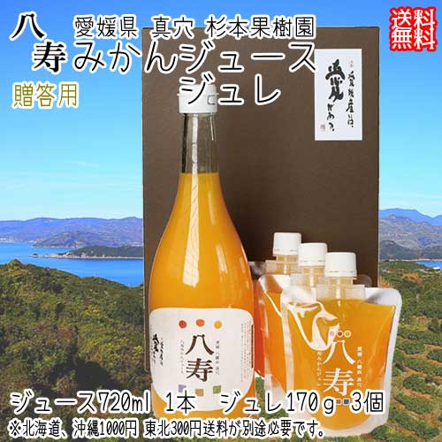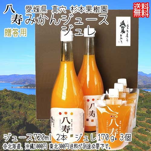 愛媛 真穴八寿産 ( 贈答用 八寿みかんジュース ジュレ ) 720ml 2本 170g 3個 送料無料 北海道 沖縄 東北は別途送料 宇和海の幸問屋