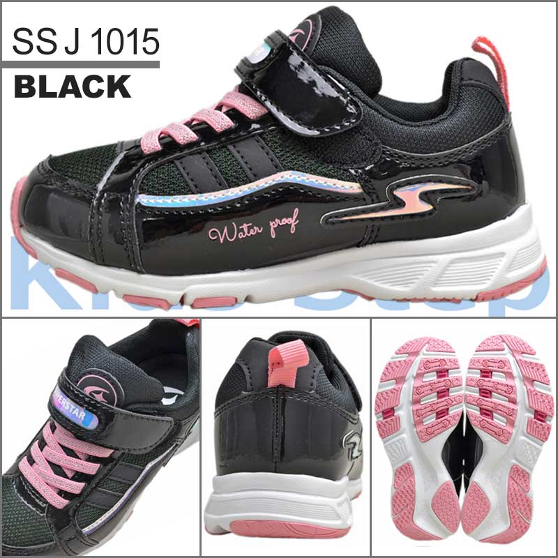 防水 スニーカー 通学 キッズ ジュニア レインスニーカー スーパースター バネのチカラ 女の子 小学生 子供 靴 SS J1015 ブラック 17〜23